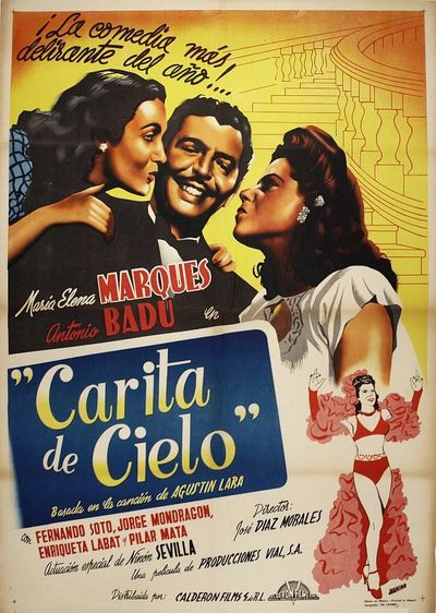 Lupe (María Elena Marqués) is arrested for stealing in the market; the police send her to a renowned forensic doctor who is single (Antonio Badú), to be a subject for his research into genetic differences in the criminal underworld. The doctor does not know that Lupe is not really a thief, but is merely posing as one in an attempt to infiltrate a criminal cell that is threatening her father. Despite her personal background, Lupe, colluding with the doctor’s sister, gains a foothold in the house, where she is employed as a maid. Social conventions marginalize her, but soon her secret will be revealed. Carita de cielo (Angel face) is a singular comedy of errors, the main purpose of which is to exploit the leading actress’ previous success in Doña Bárbara (Fernando de Fuentes, 1943). Even if the comedy filmed by José Díaz Morales is occasionally absurd, the movie’s cast elevates it to a classic of its time. Fernando Soto Mantequilla, who appears at certain moments in a role reminiscent of the great Cantinflas, confirms scene after scene his status as one of the great supporting actors of Mexican cinema. In Carita de cielo, the comedy of manners transcends all its limitations as soon as Ninón Sevilla appears on-screen. The producer, Pedro Calderón, added her to a plot that was already farfetched, attracted by the beauty of this showgirl who had just arrived from Cuba. The producer decided to include her in two musical numbers that have no connection to the plot. His gamble paid off because Ninón Sevilla’s charisma and magnetism keep the eyes of the spectator focused on her. This was not just the beginning of a long film career for the Cuban actress and dancer; it was also the first appearance of the Caribbean music legend Benny Moré on the big screen.